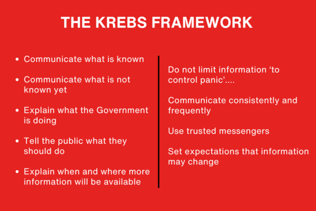The Krebs Framework sets out how messages should be structured during a crisis in order to give the public the information they need, and how this can be achieved.